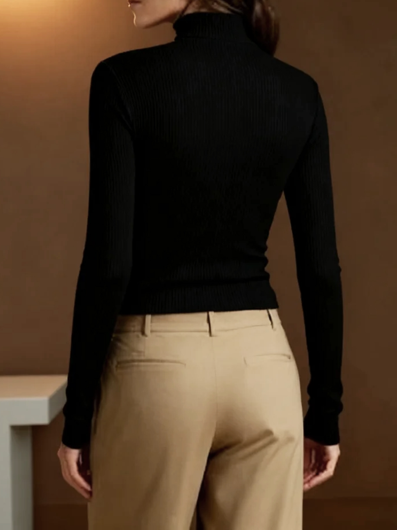 Black Top Stand-up Neck Pearl Bead T-Shirt